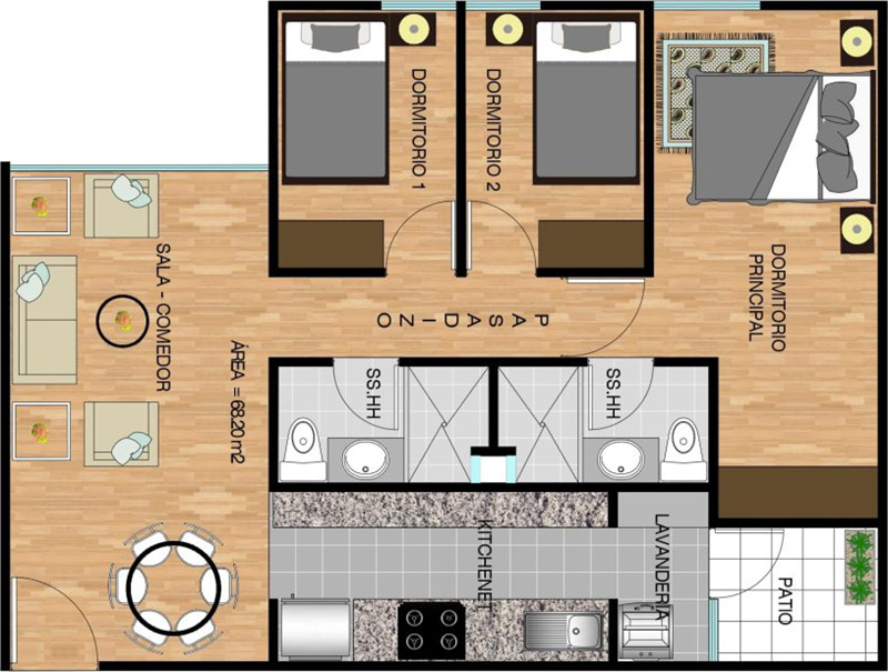 Área ocupada: 68.20 m2