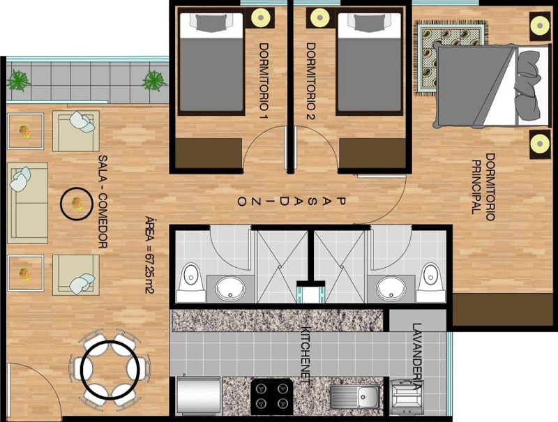 Área ocupada: 67.65 m2
